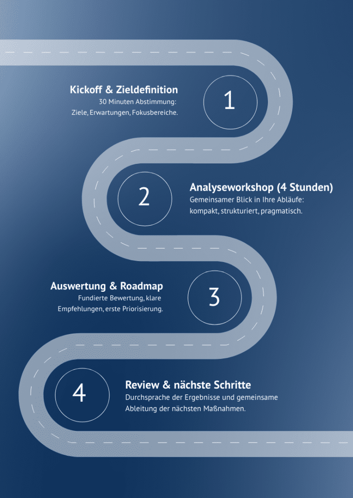 Sie erhalten eine klare Priorisierung sowie eine Roadmapfür die nächsten Schritte.